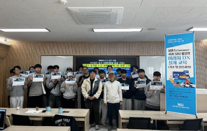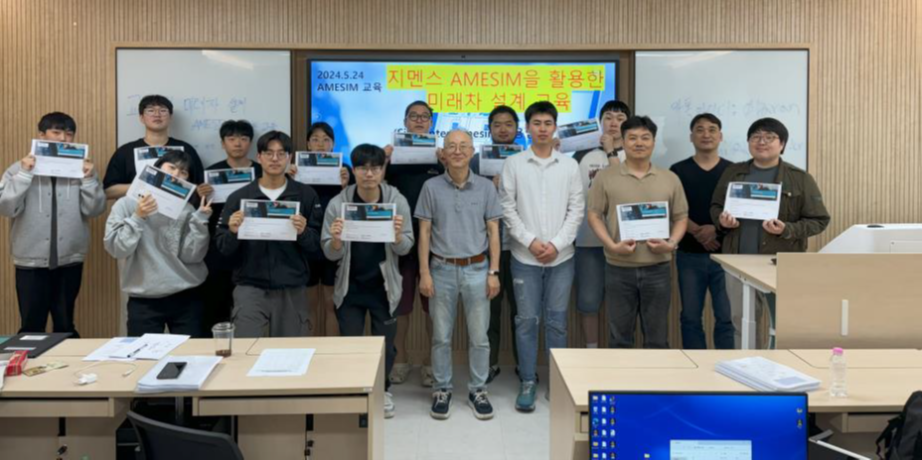 20 students joined the Siemens AMESIM Future Vehicle DX Design Training, focusing on the AMESIM Basics and certification course. Held at Chungbuk National University and taught by Prof. Seok-ho RHI with TAs Jisu Lee and Sujong Kim.