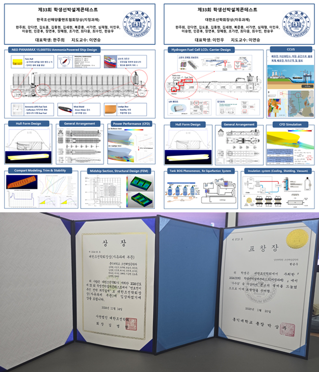 At the 33rd student Ship Design Contest hosted by the Society of Naval Architects of Korea, two student teams from Hongik University’s Department of Naval Architecture and Ocean Engineering won prestigious awards under the guidance of Professor Yeon-Seung Lee.