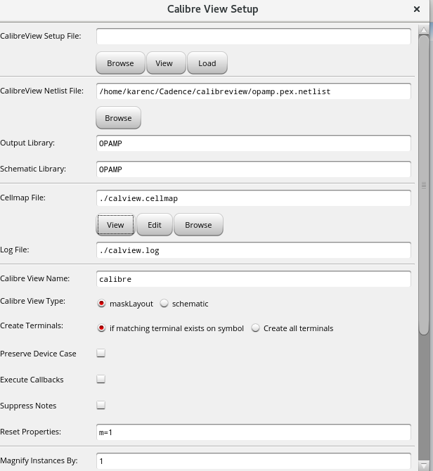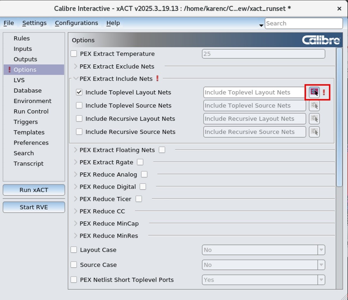 The Calibre View Name is the name of the extracted view that will show up in the Cadence library. Users may choose to run extraction multiple times and can store multiple extracted netlists with different names, for example, calibre_selectednet, calibre_allnets, calibre_noreduction, calibre_withreduction.