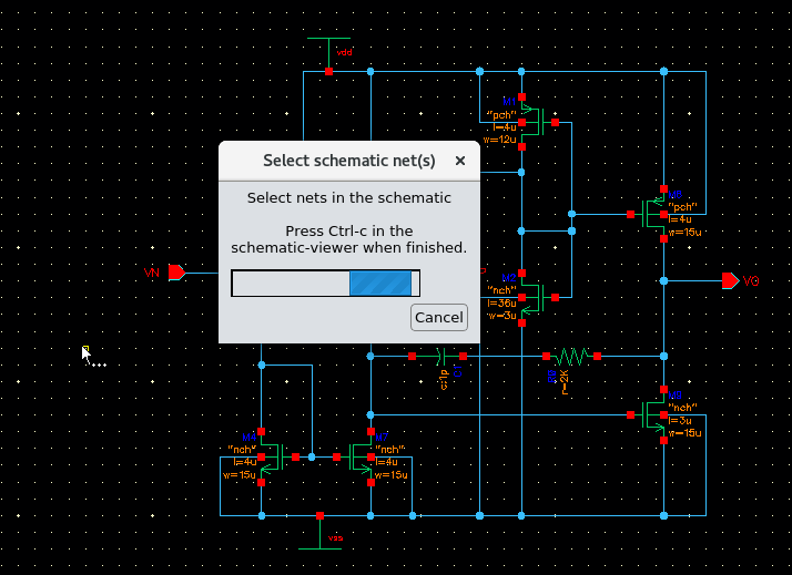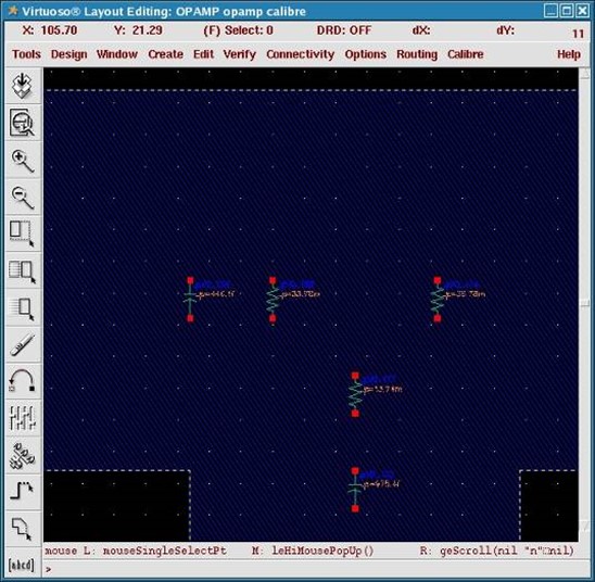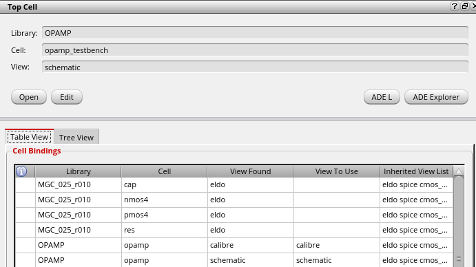 A graphical calibreview will be created, with parasitics only on the critical nets that were selected. This extracted view can then be used within the Analog Design Environment (ADE). Either all instances of the opamp can point to the newly created calibre view, or you can use the Hierarchy Editor to point specific instances to the calibre view and others to the original schematic: