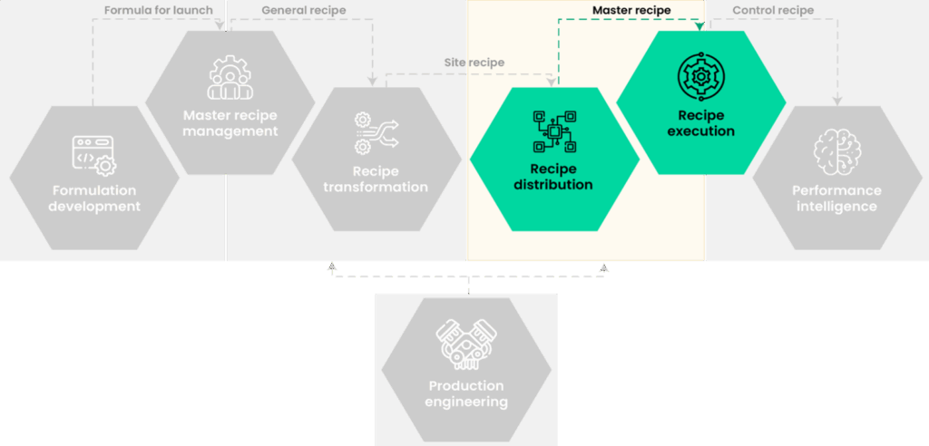 Enterprise recipe management (ERM) centralizes recipe authoring and validation. Manufacturers can define and manage product formulations, ingredients, equipment constraints and procedures from one platform. With enterprise recipe management, master recipes are no longer built from scratch for every plant. They’re authored once and automatically adapted based on local capabilities.