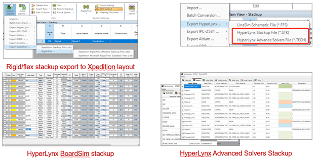 Rigid/Flex import to Xpedition, LineSim and BoardSim.