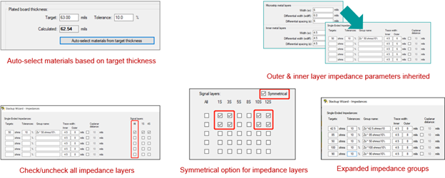 The biggest enhancement is to auto-select materials based on target board thickness. This is a convenient way to quickly achieve a starting board design.