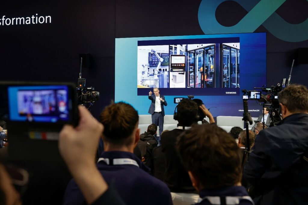 Cedrik Neike, Managing Board Member and CEO Digital Industries at Siemens, entertains the crowd.