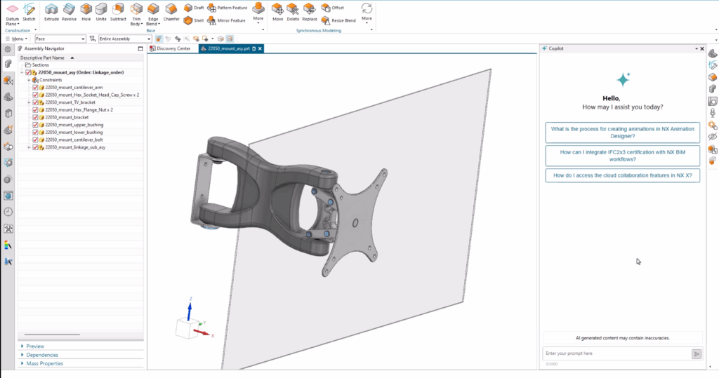 Designcenter X NX Copilot is our engineering-focused Generative AI assistant that brings innovation to life by turning natural language into action. The new tool leverages industry best practices and Siemens knowledge to guide users through complex tasks with experienced and informative responses. With Copilot, you can ask questions in plain language, and everything will be translated into domain-specific commands, helping with everything from best design approaches to error resolution.