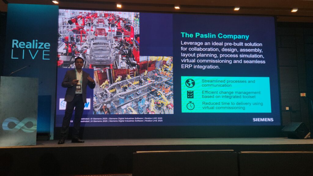 Tecnomatix sessions highlighted virtual commissioning, line planning, and human-centered simulation, showing how manufacturers can validate production processes, optimize workflows, and enhance operator safety before physical deployment.