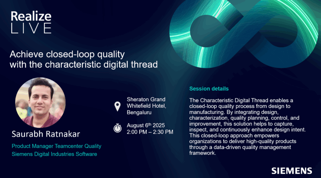 Join Saurabh Ratnakar, Product Manager – Teamcenter Quality, on 6th August from 2:00 PM to 2:30 PM, as he explore how the Characteristic Digital Thread transforms quality management from a traditional method into a strategic digital advantage.