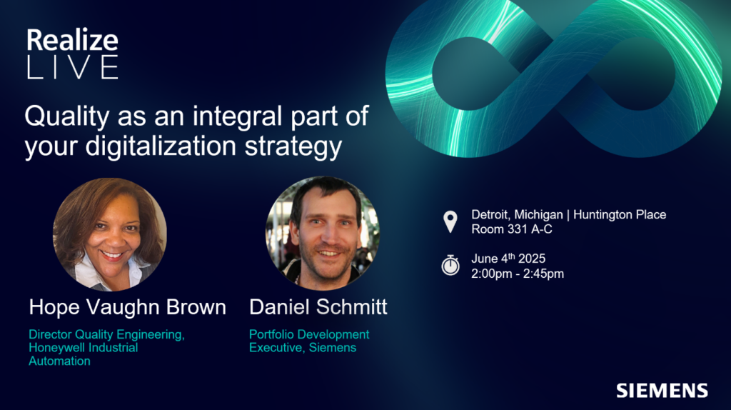 Discover how Honeywell Industrial Automation is revolutionizing its quality management processes through digital transformation. In this exclusive session, Daniel Schmitt, Portfolio Development Executive at Siemens, joins Hope Vaughn Brown, Director of Quality Engineering at Honeywell Industrial Automation, to showcase how quality becomes an integral part of the digitalization strategy.