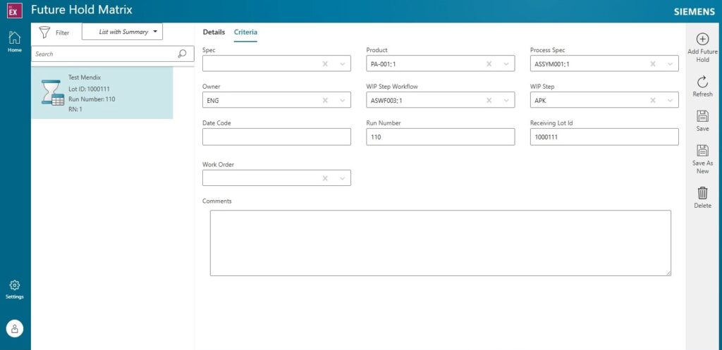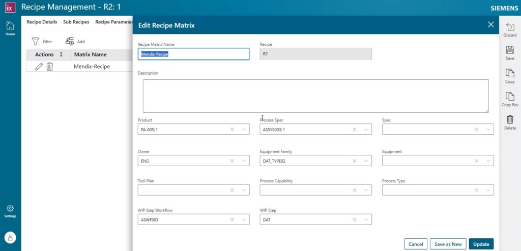 Enhancements made to recipe management and future hold matrix Mendix UIs. We have applied a series of optimizations to both UIs to align the user experience to make it consistent.