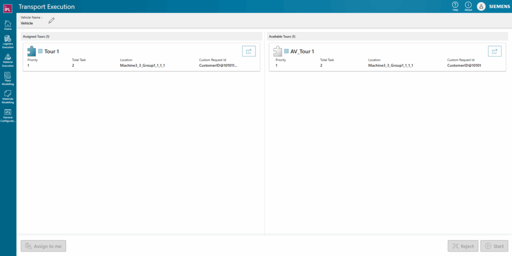 A new vehicle assignment logic enables IPL to allocate all eligible vehicles for a tour when a request does not specify a vehicle. Alternatively, drivers can select from available tours using the updated Transport Execution App. This setup improves flexibility and utilization in mixed‑fleet environments.