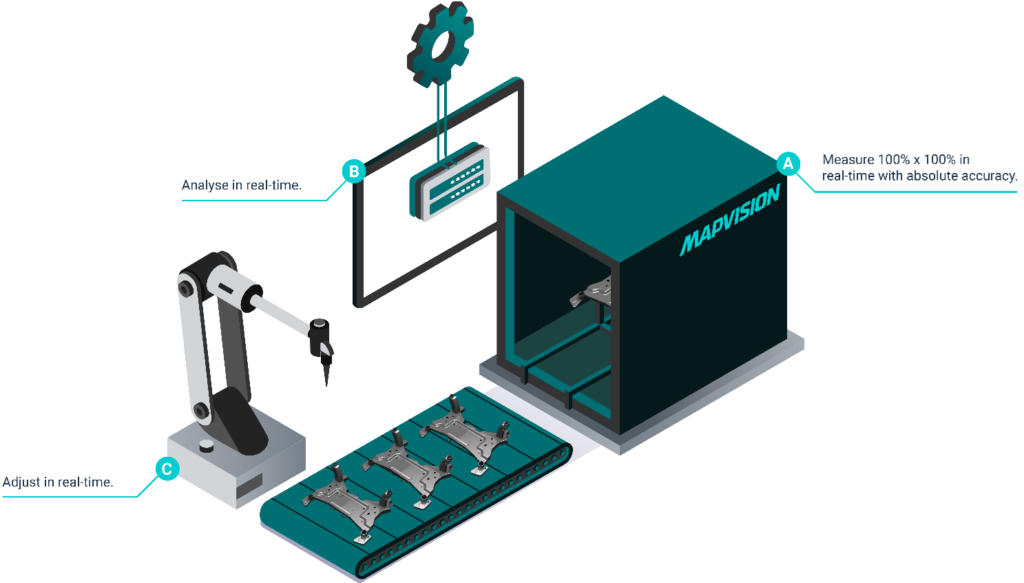 The automotive industry around the world is in a flux with faster product cycles, smaller series and the transition to electric vehicles made of new kind of components. It is more important than ever to be able to use the data from inline measurement systems directly to adjust the production and to ensure that only green parts are delivered.
