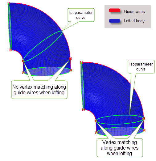 Additionally, more intuitive control over the shape of lofts is introduced – the shape of a lofted body can be controlled by vertex matching along guide wires
