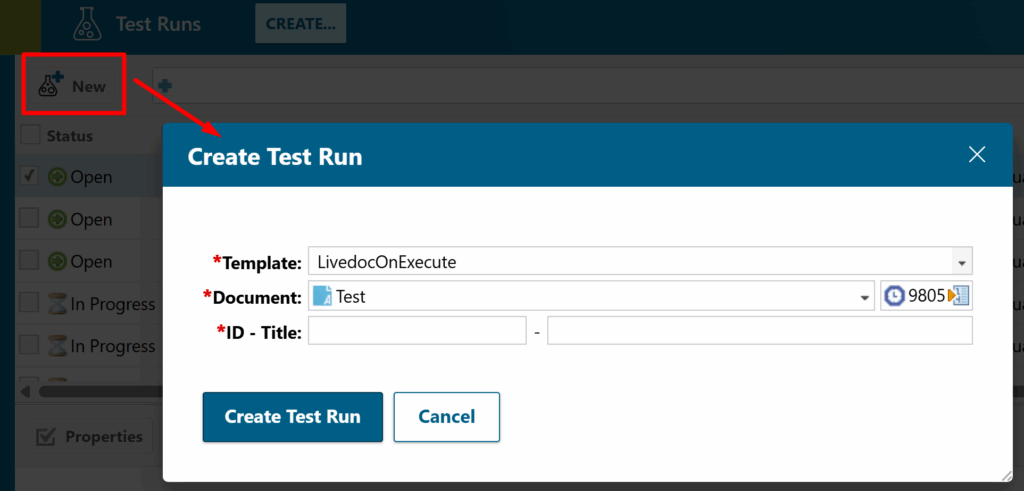 Test Runs directly from your Documents by selecting a specific Document, Revision, or even a Baseline during the creation process. This means no more editing or maintaining Test Run templates just to target a particular Document and version. Polarion intelligently prepares the Test Run with the correct Test Cases based on your chosen Document and its version, supporting both the ‘From LiveDoc on Create‘ and ‘From LiveDoc on Execute‘ strategies.
