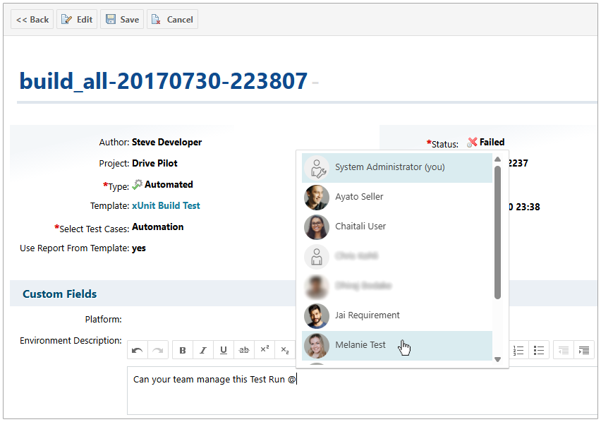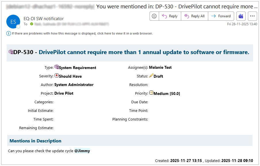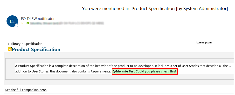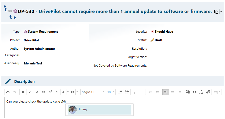 But we didn’t stop with comments. We extended the Mention feature across all of Polarion’s rich text fields.