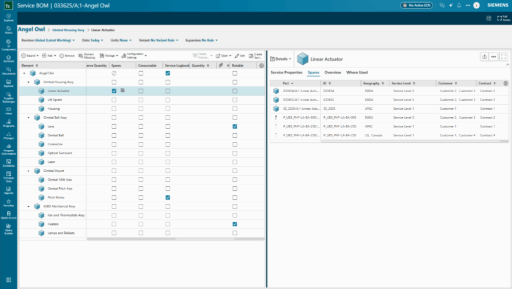 Modern Service Lifecycle Management (SLM) solutions represent a leap forward in how organizations manage their spares. Advanced SLM platforms like Siemens Teamcenter SLM allow companies to efficiently identify, manage, and track spares across the entire product lifecycle.