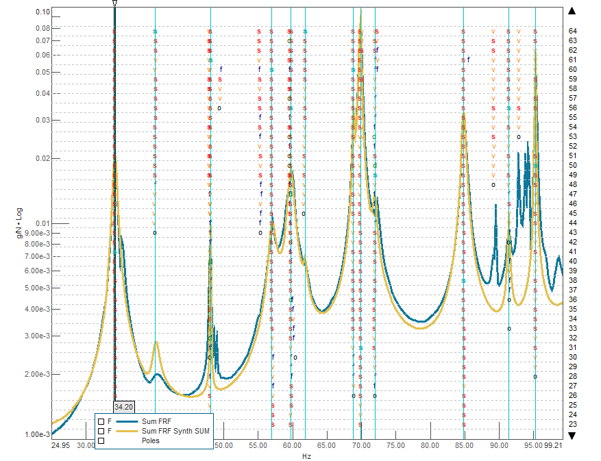 With the new modal dashboard, you gain even deeper insights. Now, you can compute the Synthesized FRF Sum and instantly compare it with the FRF Sum right within the stabilization diagram. This clear, overlaid comparison lets you quickly assess the overall quality of your modal model and immediately spot any areas where the model struggles to replicate the measured data.