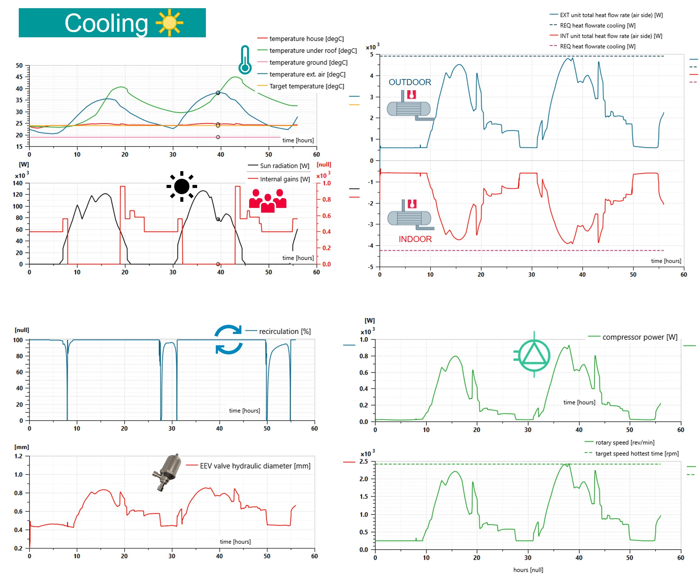 Engineers can verify that the reversible heat pump is meeting the steady-state cooling and heating requirements for the residential building during the hottest and coldest days of the year; anyway, the system is expected to work in various external conditions and loads during its long operational life.