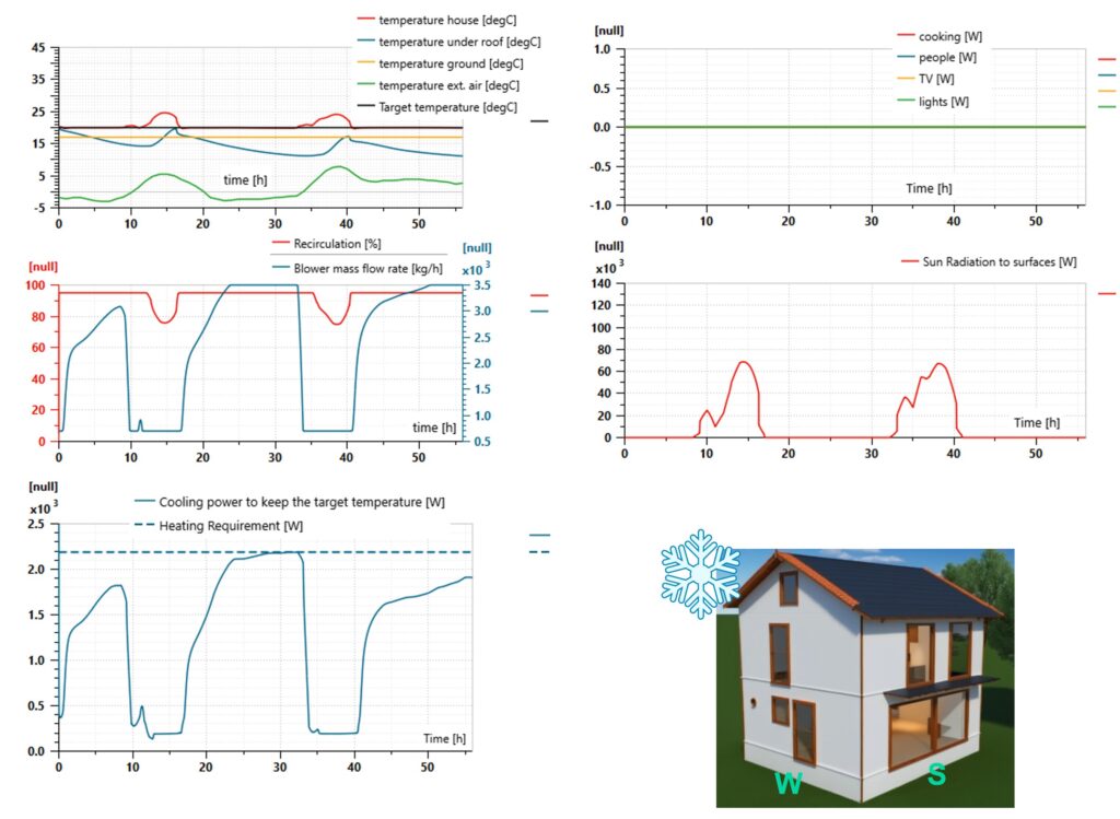 In summertime the integrated simulation model highlights that the heat pump is properly keeping the target temperature within the house, with strong sun radiation and occupants’ activities, over multiple days with good COPs also in the hottest hours.
