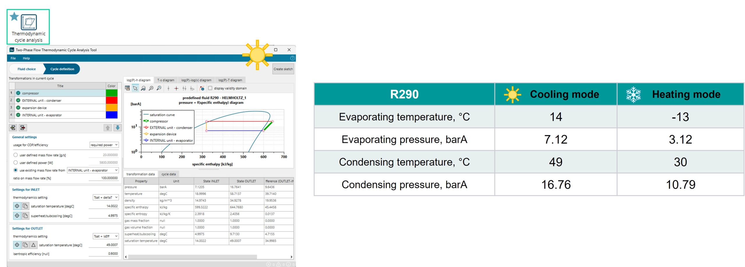 Based on the target cycles, engineers can quickly compare different refrigerants, including low-GWP options like R290 (propane), in terms of performance and select the most suitable one.