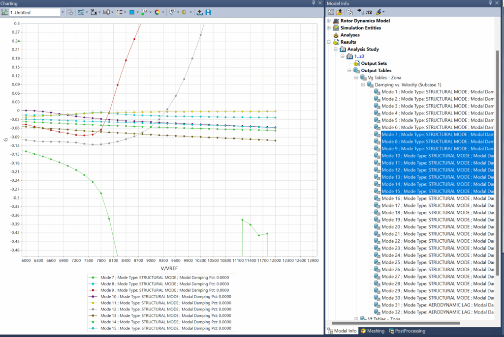 In flutter analysis, velocity vs. damping ratio graphs help engineers identify the critical flutter point where a structure’s damping becomes zero or negative. These graphs show how a structure’s stability changes as airspeed increases, revealing the transition from stable to unstable regions.
