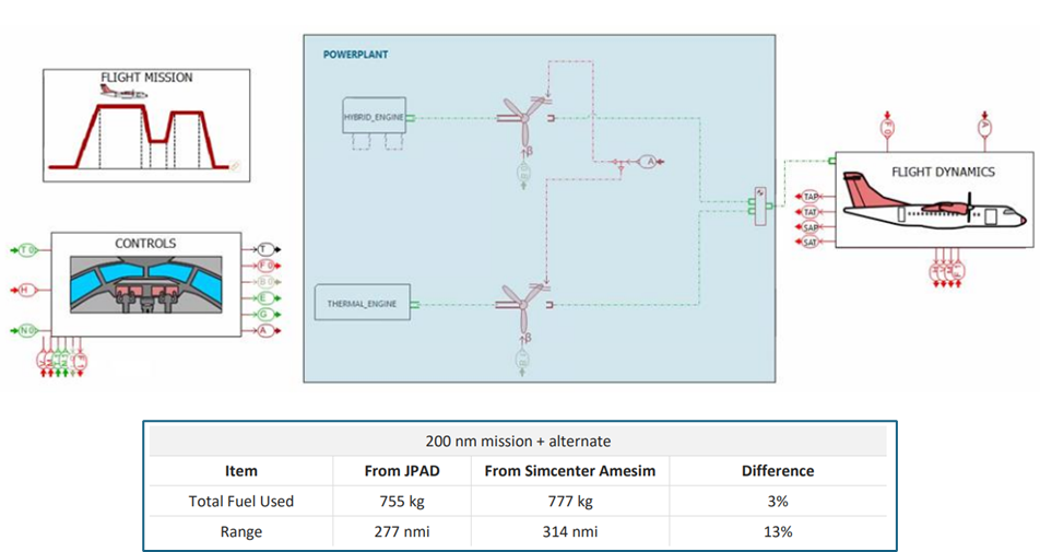 Figure 2 illustrates the Simcenter Amesim5 model from the HERA project and the comparison of 2 important metrics with the JPAD model. The correlation found justifies and motivates to explore more deeply the 2 models results4.