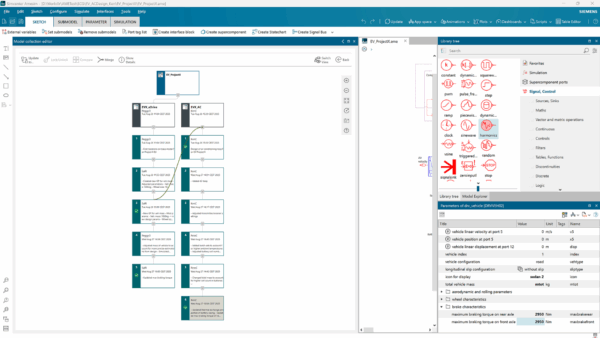 Weeks of intense work on Simcenter Amesim models culminate here. Two teams of simulation engineers – the electric drive (Peggy and Sal) and passenger comfort (Ken and Pete) teams – have been hard at work to reach performance goals. Now is the time for their work to be merged, and for the air conditioning system designed by our PASCOM whizzes to be integrated into the overall model. That’s where I come in – I’m tasked with combining the work of both teams into one final model.