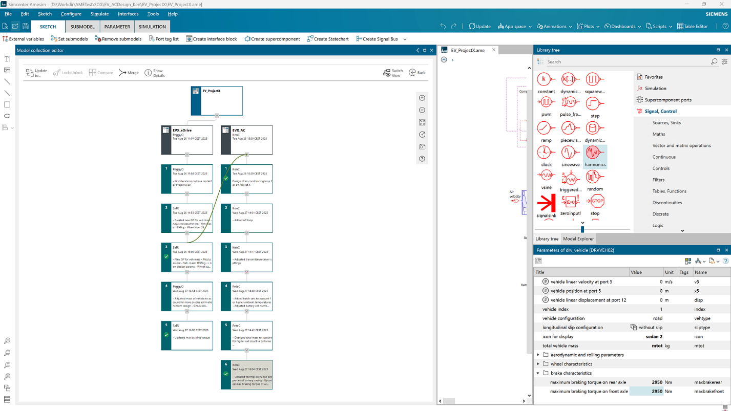 Coffee in hand, I open my own model in Simcenter Amesim. Since it is managed in System Simulation Client for Git, I automatically get a bird’s-eye view of the history of my model collection.