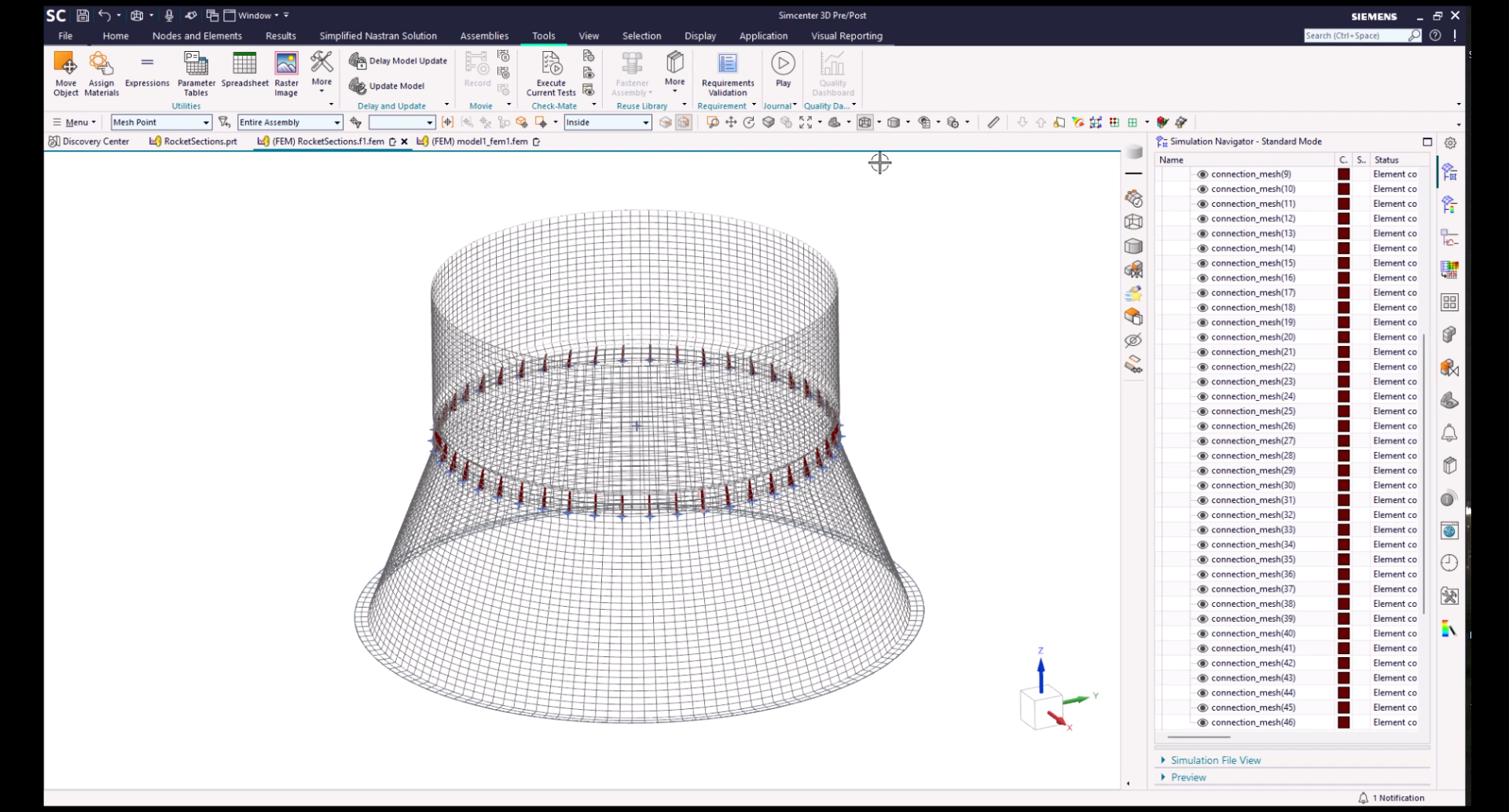 His problem did not end there; worse, the meshes around the circumference of the two sections didn’t even align. Loads couldn’t be transferred cleanly. The rocket, physically and digitally, was living in two different realities.