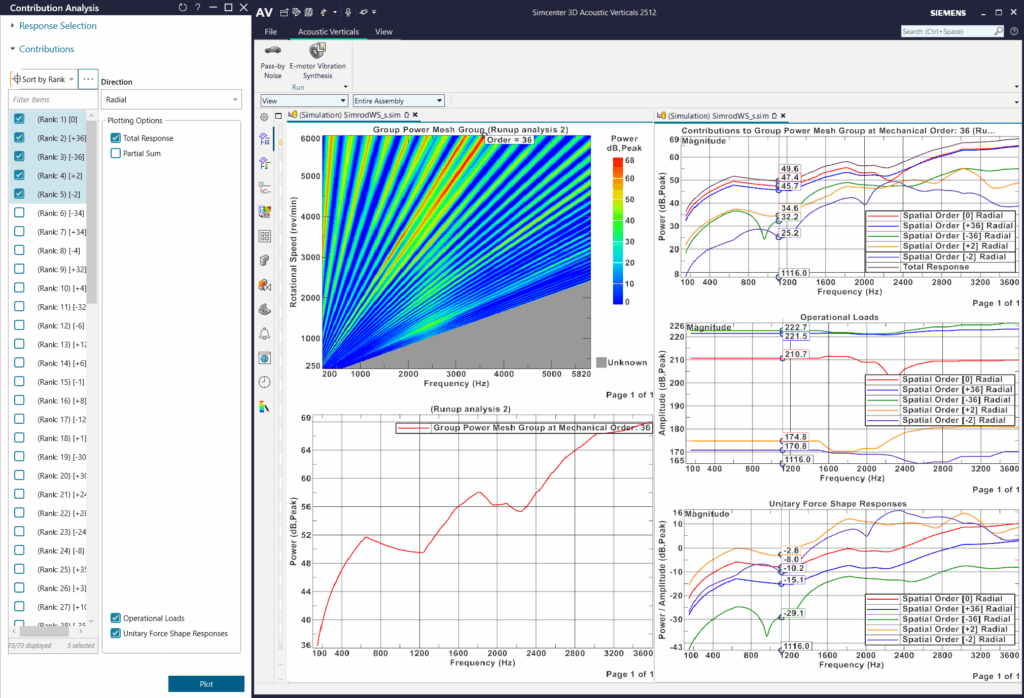 Simcenter 3D Acoustics 2512 together with Simcenter E-Machine Design introduces a new dedicated e-motor NVH analysis tool called E-Motor Vibration Synthesis (EMVS) to complement its existing well-established e-motor NVH capabilities. The EMVS process uses a dedicated customized workflow and leverages the computational efficiency of both EMAG and NVH Reduced Order Models (ROMs) to very quickly provide specific e-motor-related insights into the NVH response to NVH novices and vibro-acoustics specialists alike.