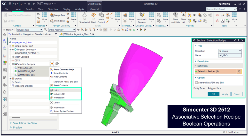 Simcenter 3D Engineering Desktop – Selection Recipe Boolean operations