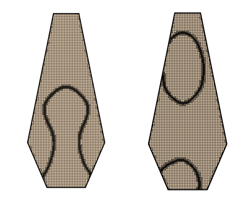 The time step by time step adaptive mesh refinement in Simcenter enabled the immiscible interface between wax and water to captured directly. The real challenge though was to identify the wax material properties in terms of temperature dependent density and viscosity and its surface tension. In addition the wettability nature of the wax/glass lamp interface and the heating power necessary to ensure the wax doesn’t heat up too much, or too little.
