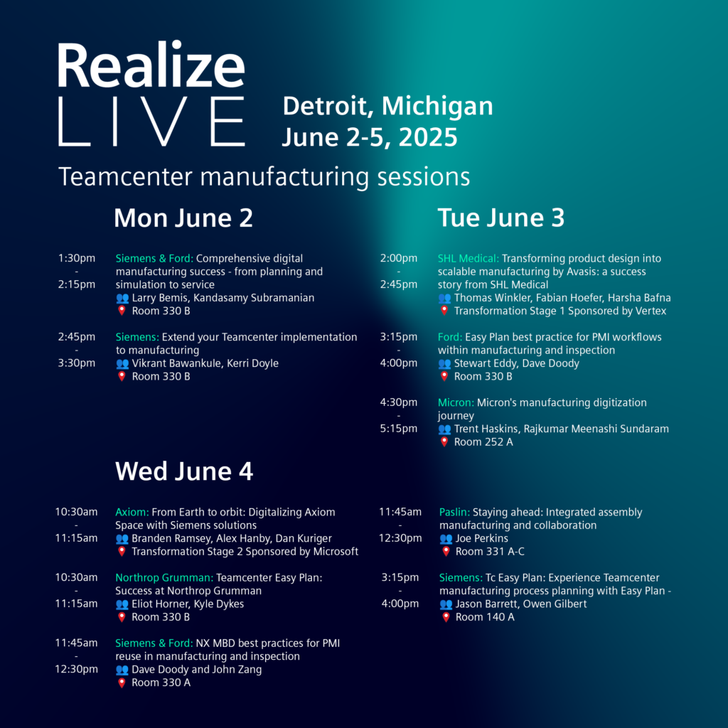 Realize LIVE 2025 brings together manufacturing engineers, planners, and automation experts to explore the future of Teamcenter Manufacturing — and this year’s lineup delivers real value.