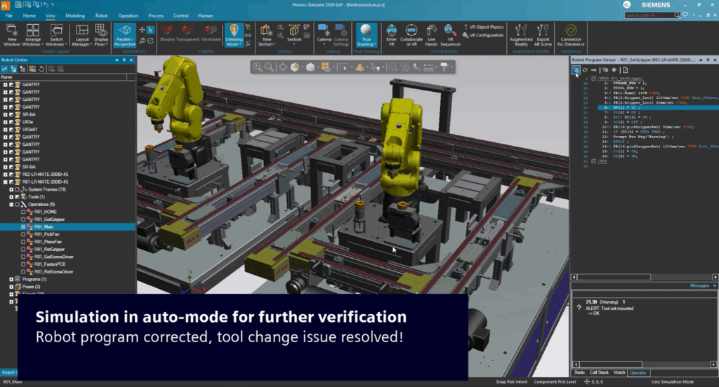 With Process Simulate, engineers create and test the entire robot program virtually: