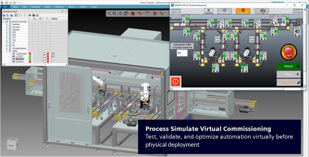 Before building the physical cell, the engineering team uses Virtual Commissioning in Process Simulate to validate how everything works together: