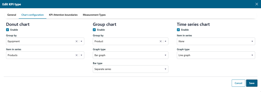 It is now possible to configure charts directly on the KPI configuration page, making it easier to create tailored visualizations. Additionally, charts can capture and display data from multiple sources simultaneously, supporting more complex analysis workflows.