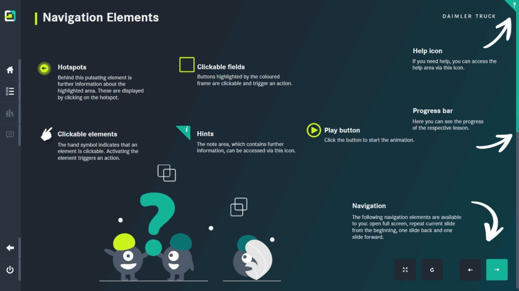 In the development phase, the team used a mix of methods, including web-based training and classroom training. The offering was supplemented by microlearning elements, such as tutorials and simulations that can be accessed just-in-time and provide direct workplace support. The instructional design focused on short practical units with clear learning objectives and variable learning paths. The technical implementation was carried out on a scalable platform with performance tracking, multilingual support and LMS integration.